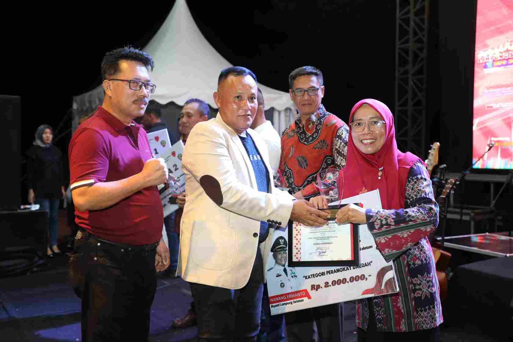 Pembagian Hadiah dibagikan langsung oleh Bupati Lampung Selatan H. Nanang Ermanto, Sekdakab Thamrin, S.Sos.,M.M, Asisten Bidang Administrasi Umum Badruzzaman, S.Sos.,M.M, Asisten Bidang Ekonomi dan Pembangunan Muhadi, S.Sos., M.M, Asisten Bidang Pemerintahan dan Kesejahteraan Rakyat Eka Riantinawati, S.KM., M.Kes. (tim IWOI Lamsel/HPW)