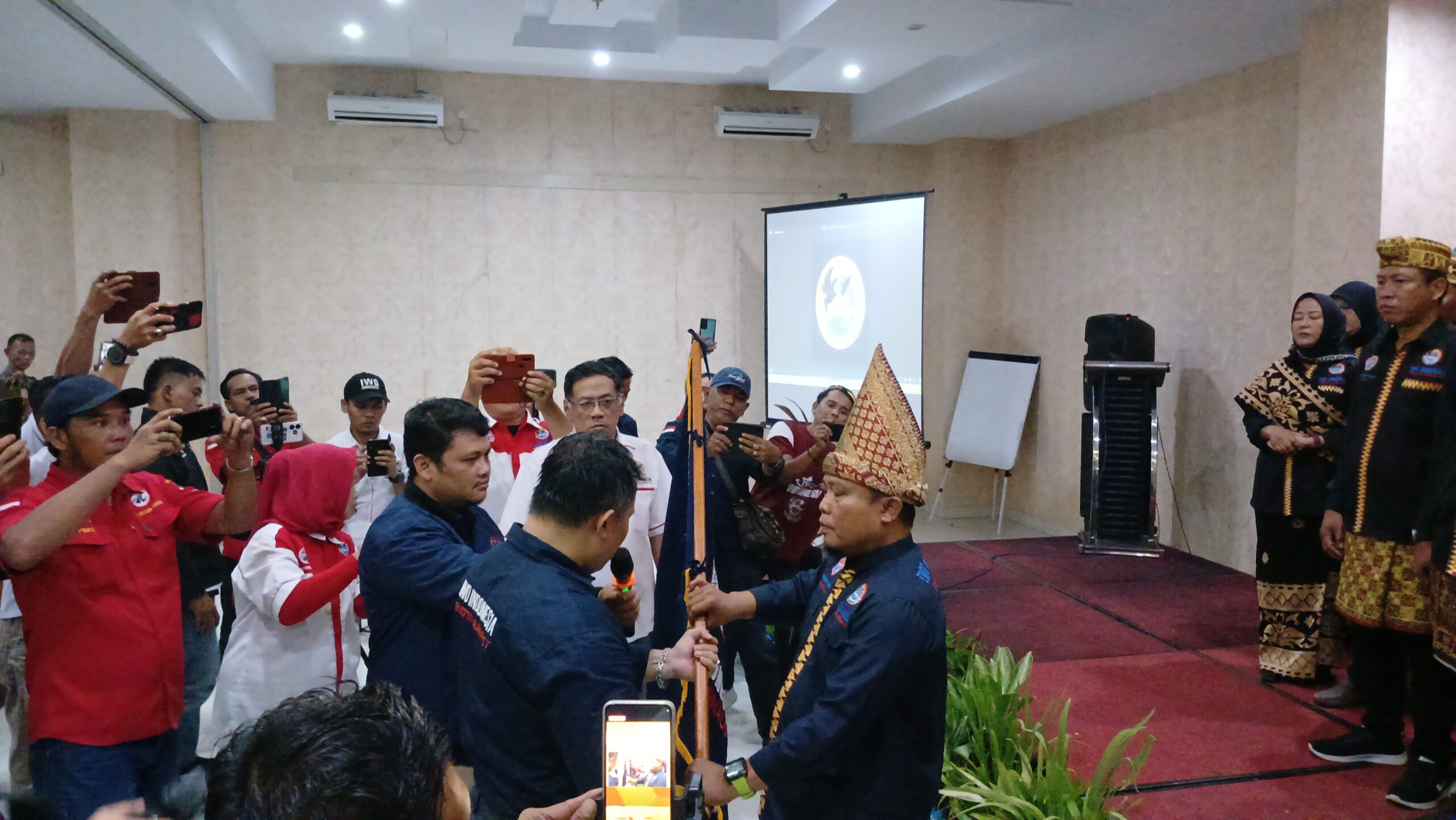 Selanjutnya ketua DPD IWO Indonesia Pringsewu dengan menggenggam tiang Petaka menerima penyerahan Petaka IWO Indonesia