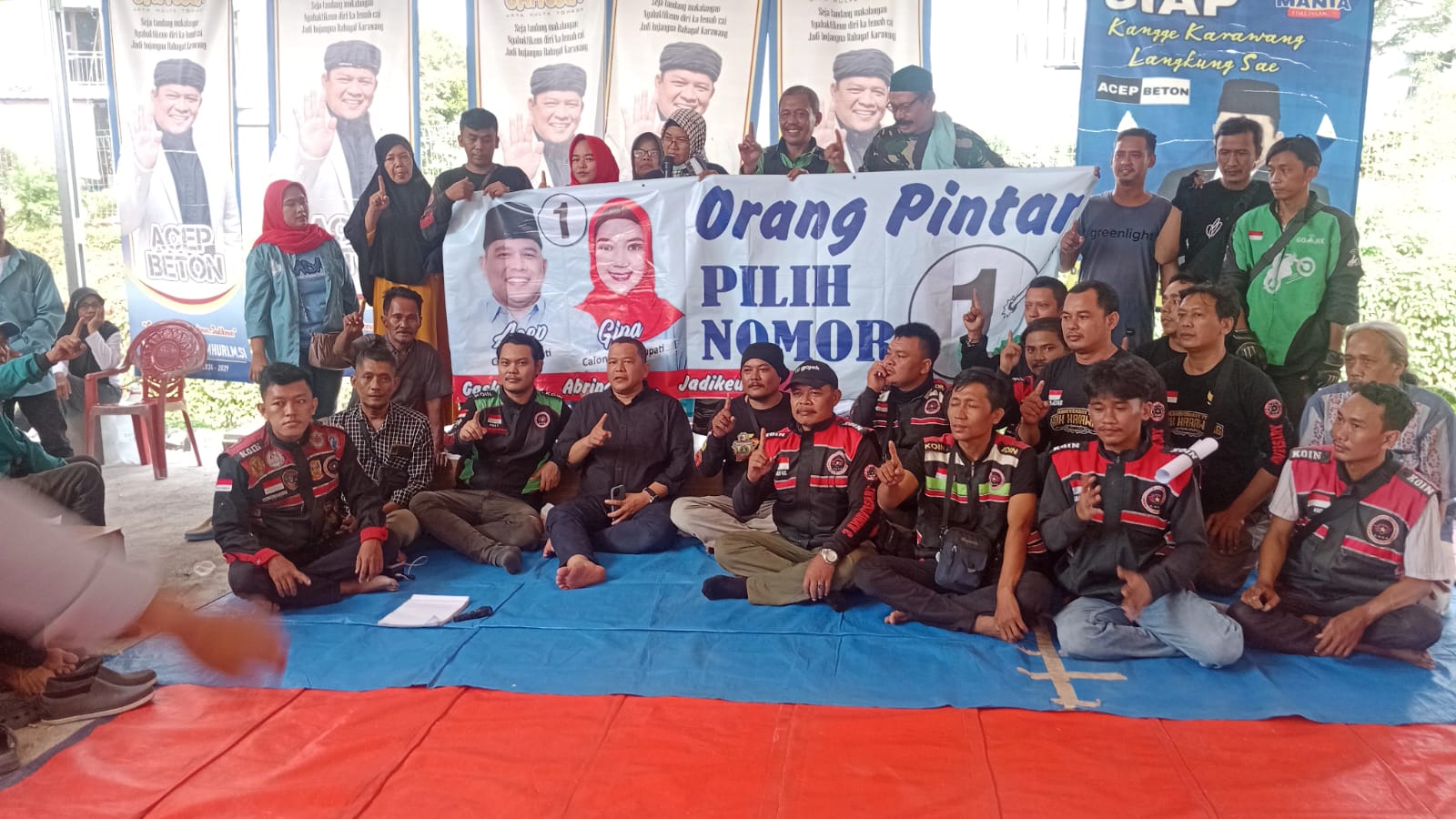 Dalam acara yang diselenggarakan di Rumah Pemenangan Paslon Nomor Urut 1 Perum Prima Sukaharja Blok H2 Kabupaten Karawang pada Minggu 13 Oktober 2024 siang hadir puluhan driver ojol tergabung Koin Karawang Mendengar langsung visi-misi Paslon Acep-Gina, puluhan pengemudi ojol tersebut memantapkan diri mendukung Acep-Gina.
