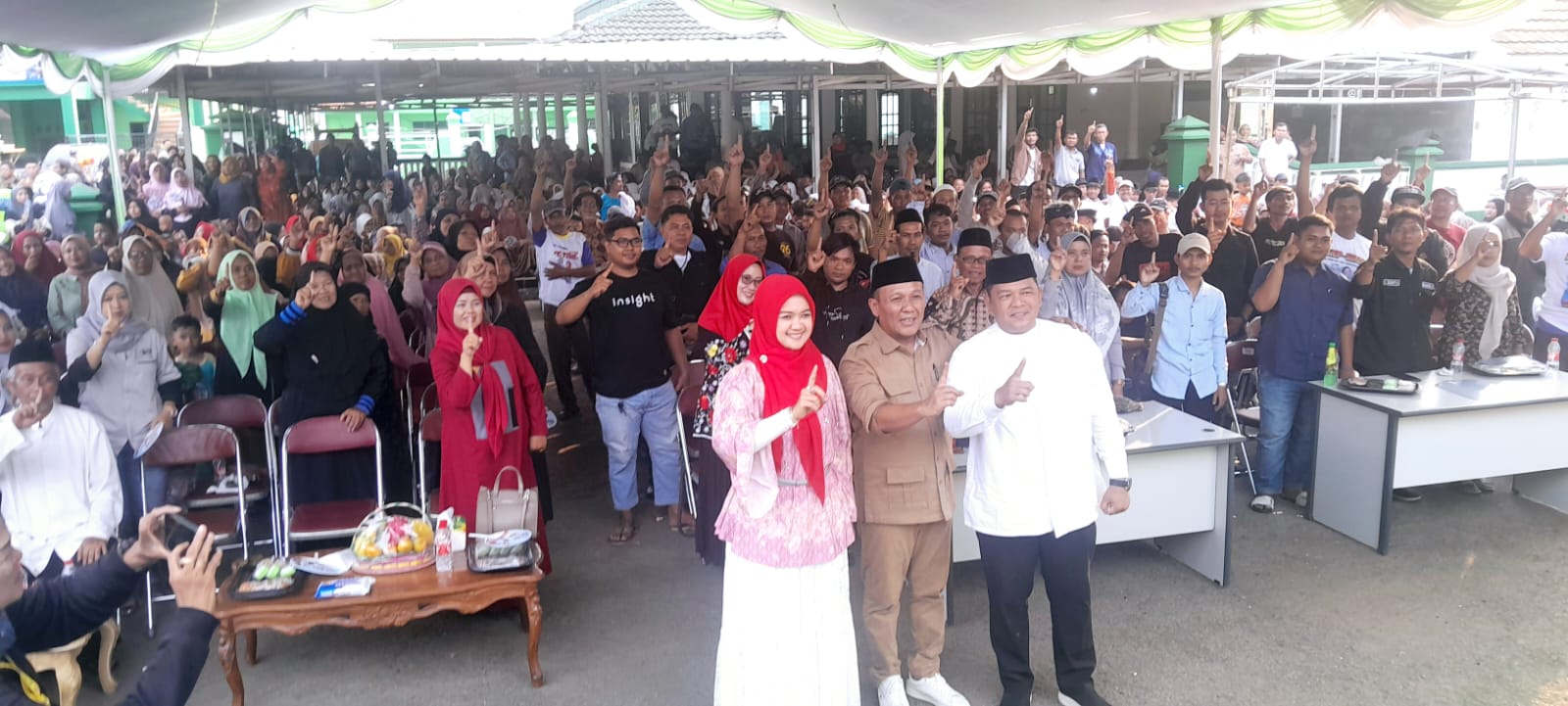 “Ajak seluruh keluarga dan besan untuk berbondong-bondong coblos yang ada kerundung merahnya. Pokoknya Gaskeun, Abringkeun, Jadikeun!,” ajaknya.