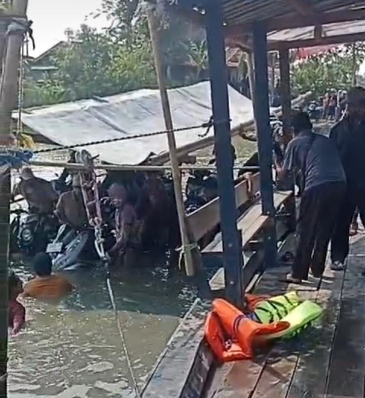 KARAWANG | Infokus.web.id – Diduga Karena Kelebihan Muatan Perahu Penyebrangan di Desa Kosambibatu arah penyebrangan Desa Kertamukti tenggelam adanya penyebrangan perahu manual tersebut yang di buat secara mendadak karena jembatan sedang dalam perbaikan.