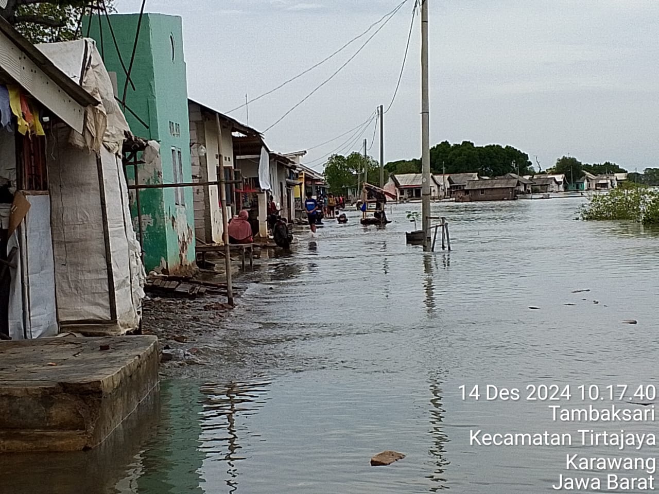 KARAWANG || Infokus.web.id – Sabtu 14 Desember 2024 Banjir rob atau air pasang laut melanda wilayah pesisir utara Kabupaten Karawang, termasuk Desa Tambaksari, Kecamatan Tirtajaya. Tiga dusun terdampak paling parah adalah Dusun Sarakan, Dusun Tambaksumur II, dan Dusun Tambaksumur I. Peristiwa ini terjadi sejak Jumat (13/12) pukul 06.00 WIB dan hingga Sabtu (14/12) pagi, kondisi air laut masih deras menggenangi wilayah tersebut.
