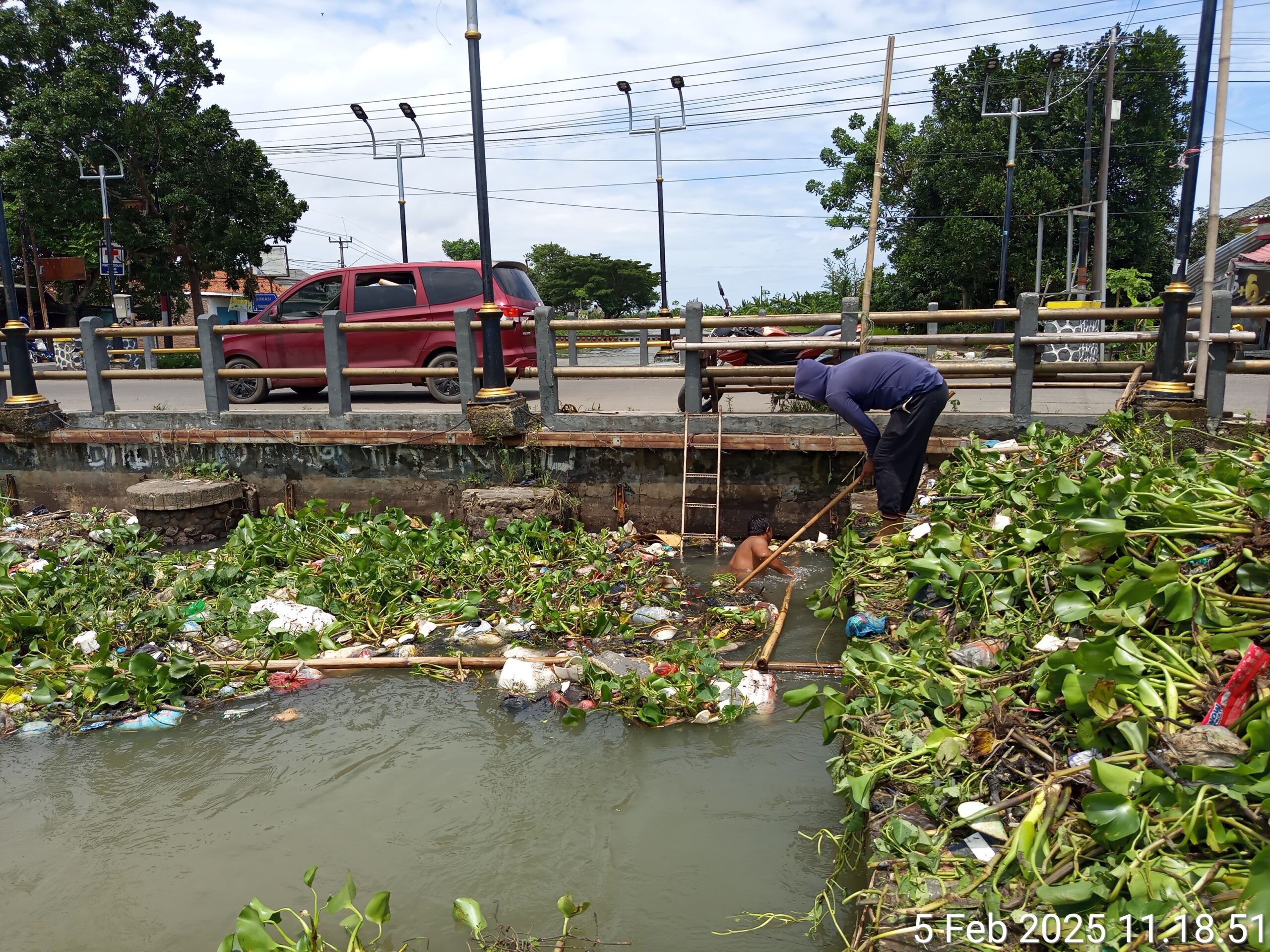 Bisa kita lihat dalam pembersihan sekarang ini, eceng gondok yang bertumpuk, berbaur dengan sampah sampah rumahan. hal ini yang mengakibatkan tersumbat nya di jembatan. sehingga kami bersama tim di lapangan terus melakukan jangan sampai adanya sampah yang menyumbat arus air jadi tersendat. “Tutur Golun