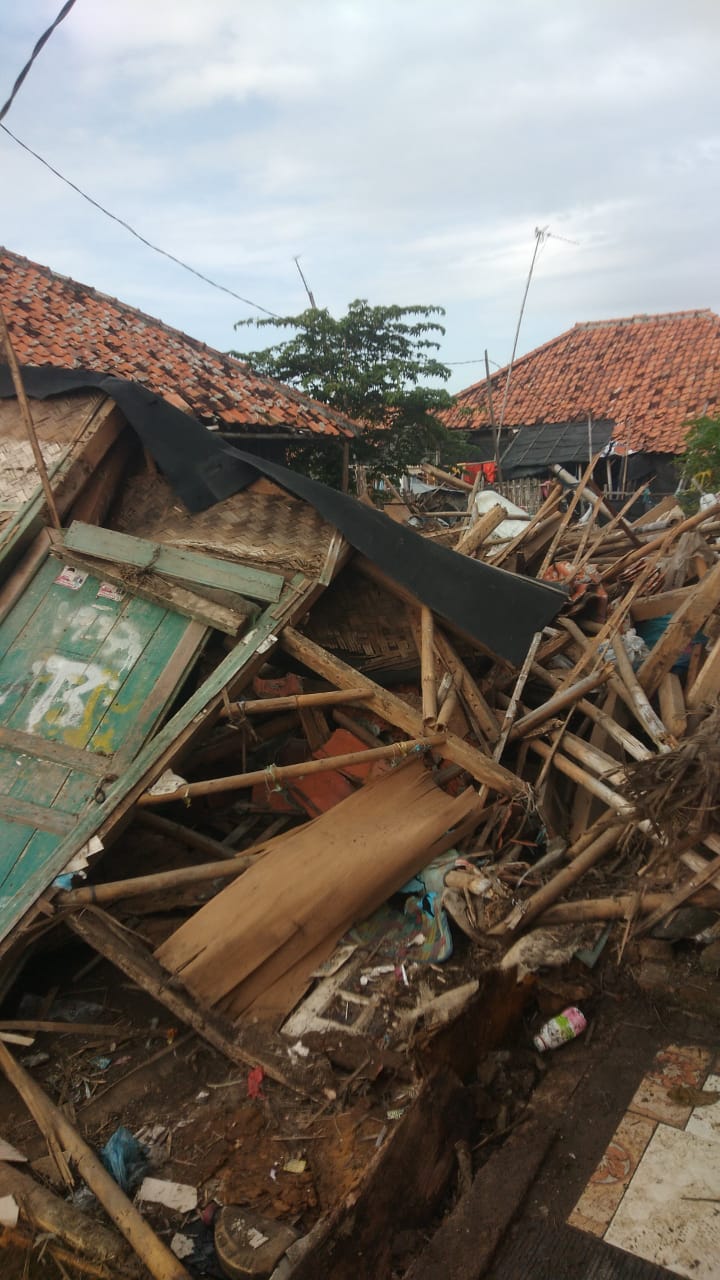 “Saya juga tidak tau kalau rumah saya roboh, karena pada saat kejadian saya sedang ada di rumah saudara saya, saat itu selesai shalat tarawih di Musholah. Tak lama pada saat itu tahu tahu ada suara seperti tumpukan bangunan yang ambruk. Khawatir suara itu rumah ambruk dan khawatir itu rumah saya karena rumah saya memang sudah banyak yang lapuk dan rapuh, akhirnya saya pulang untuk melihat, ternyata yang roboh itu adalah rumah saya.” Ungkapnya.