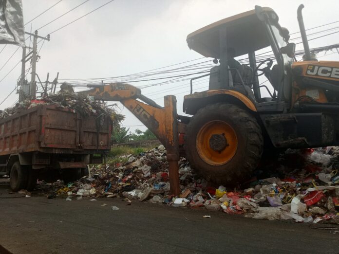 KARAWANG | INFOKUS.WEB.ID | UPTD Wilayah I Dinas Lingkungan Hidup (DLH) Kabupaten Karawang menertibkan tumpukan sampah liar yang masih marak di sejumlah titik wilayah Karawang Barat, khususnya di TPS liar Kampung Babakan, Kelurahan Tanjung Mekar, Kecamatan Karawang Barat, Kamis (27/11/2025).
